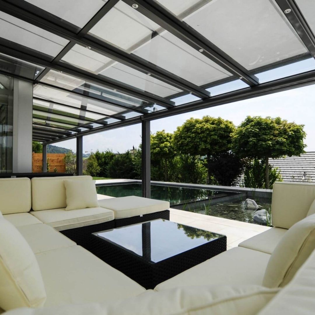 S-Design Glasdächer sind massgeschneidert und passen sich individuell an jedes Haus und jede Terrasse an.
