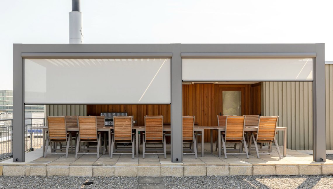 Wetterunabhängig draussen sitzen. Das ist möglich dank dem neuen Lamellendach SKL 140. Die Senkrechtmarkisen sind nahtlos im Träger integriert, was ein wunderschönes Design hergibt. Egal ob Sonne, Wind oder Regen, das Lamellendach lässt einem nicht im Stich.