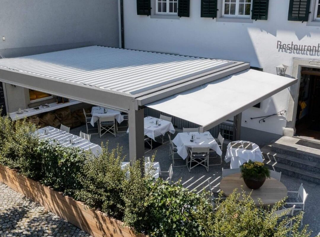 Mit dem Bau eines S-Design Lamellendaches können die feinen Gerichte nun auch bei fast jedem Sommerwetter draussen genossen werden. Diese Wetterunabhängigkeit war einer der Gründe, warum sich die Verantwortlichen für ein Lamellendach entschieden haben. Zudem zeigen Umfragen, dass Gäste Lokale mit schönem Aussenbereich bevorzugen und auch aktiv danach suchen. Ein weiterer Anstoss also, in die Terrasse zu investieren.