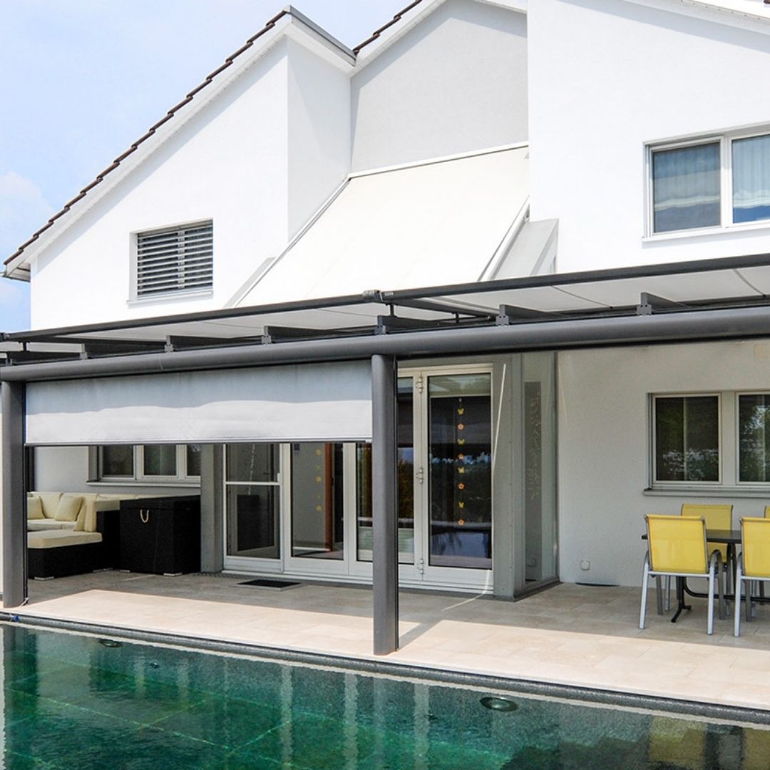 Unsere Dachbeschattungen und Senkrechtmarkisen sorgen bei jedem Sonnenstand für ein ideales Klima. Sie bieten perfekten Schutz bei Sonne, Wind und Regen.
