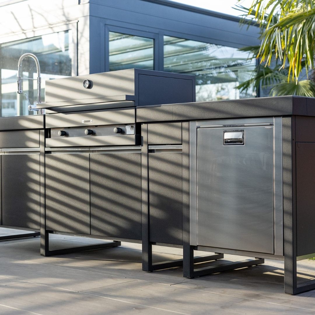Die Outdoor-Küchen von Theiss sind speziell für den Einsatz im Freien konzipiert, was ihre Wetterfestigkeit und Flexibilität in verschiedenen Umgebungen unterstreicht